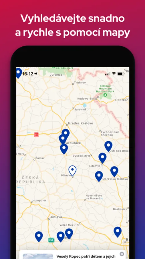 • vyhledávejte pohodlně s pomocí interaktivní mapy v celém Česku