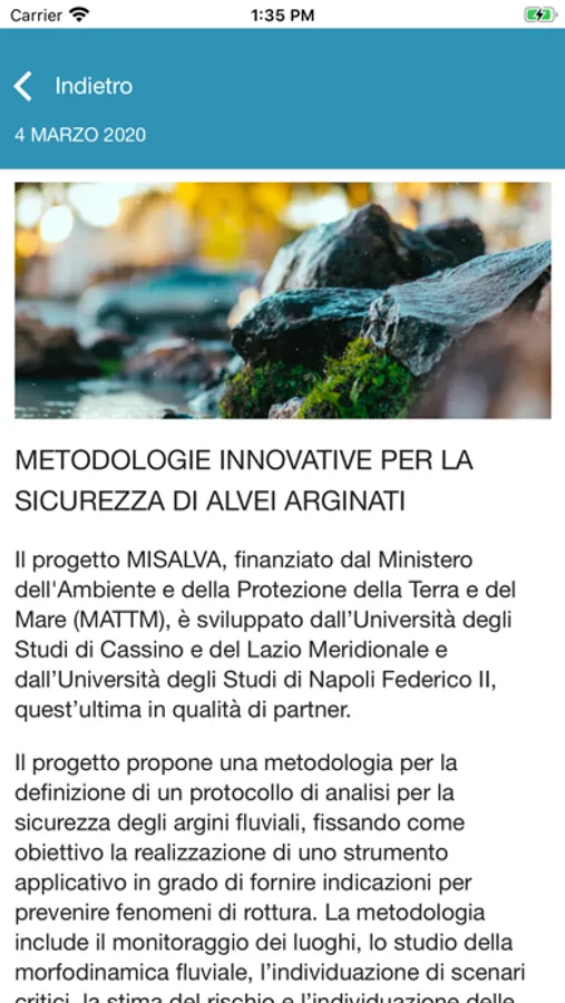 Il progetto MISALVA, finanziato dal Ministero dell'Ambiente e della Protezione della Terra e del Mare (MATTM), è sviluppato dall’Università degli Studi di Cassino e del Lazio Meridionale e dall’Università degli Studi di Napoli Federico II, quest’ultima in qualità di partner.
