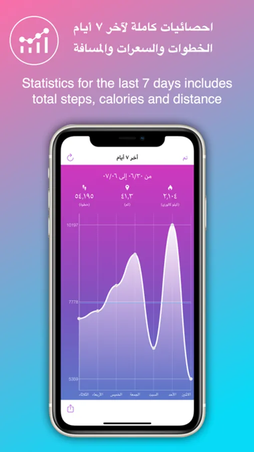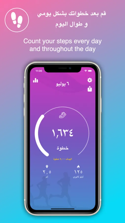 تطبيق عداد الخطوات يساعدك على عد خطواتك بشكل يومي وطوال اليوم.