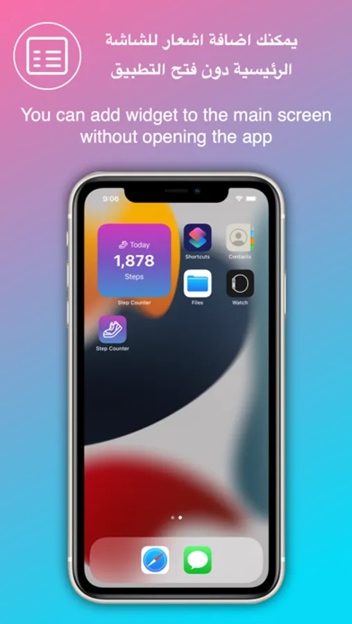 - يمكنك اضافة شاشة عرض للخطوات لشاشة جهازة الرئيسية ومن ثم مراقبة عدد الخطوات دون الحاجة لفتح التطبيق.