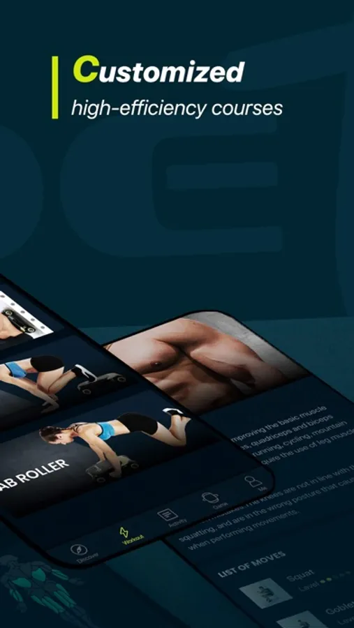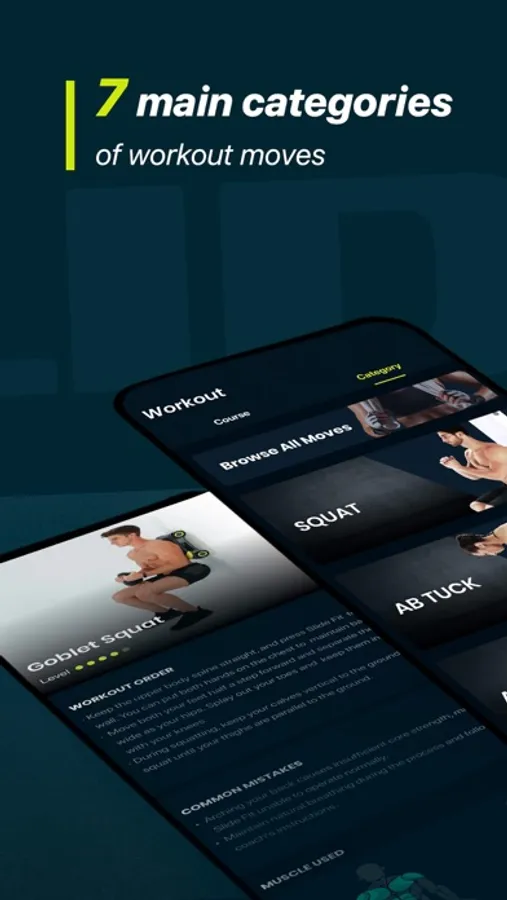 -7 main categories/Over 30 workout moves/Customized and efficient courses-