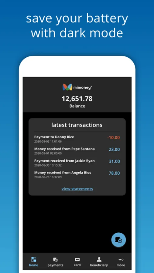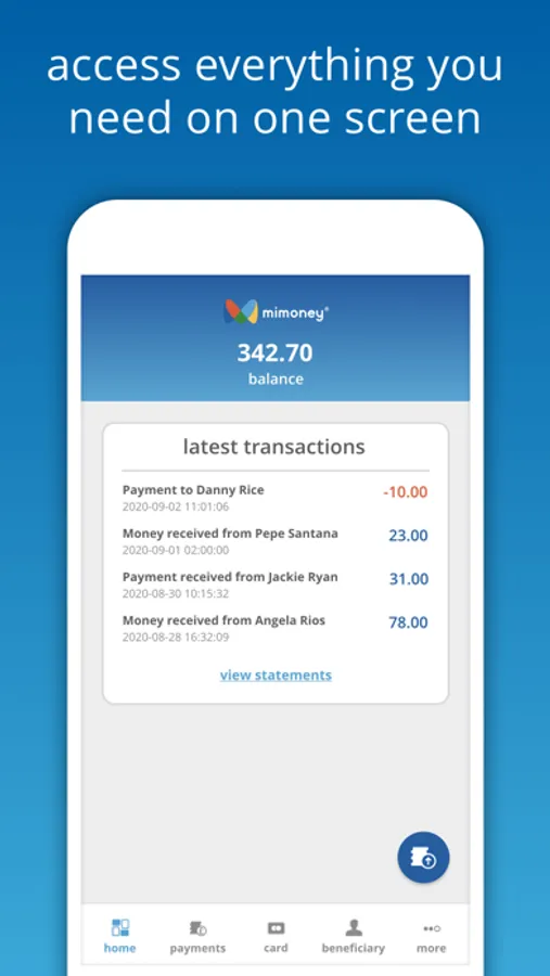 - Make free instant payments to other mimoney account holders