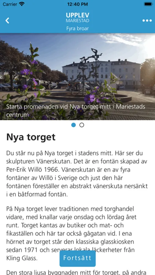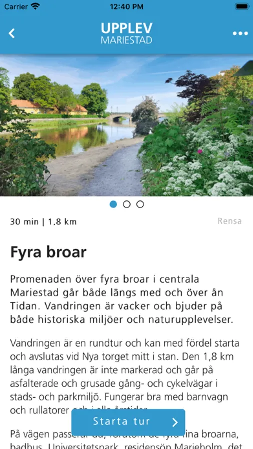 Välkommen att uppleva Mariestad! Här hittar du fina promenader och cykelturer runt om i Mariestad. Med hjälp av appen hittar du trevliga promenader och cykelturer runt om i Mariestad. Du kan guida dig själv och upptäcka fina besöksmål, lära dig mer om trakten och hitta nya favoritplatser.