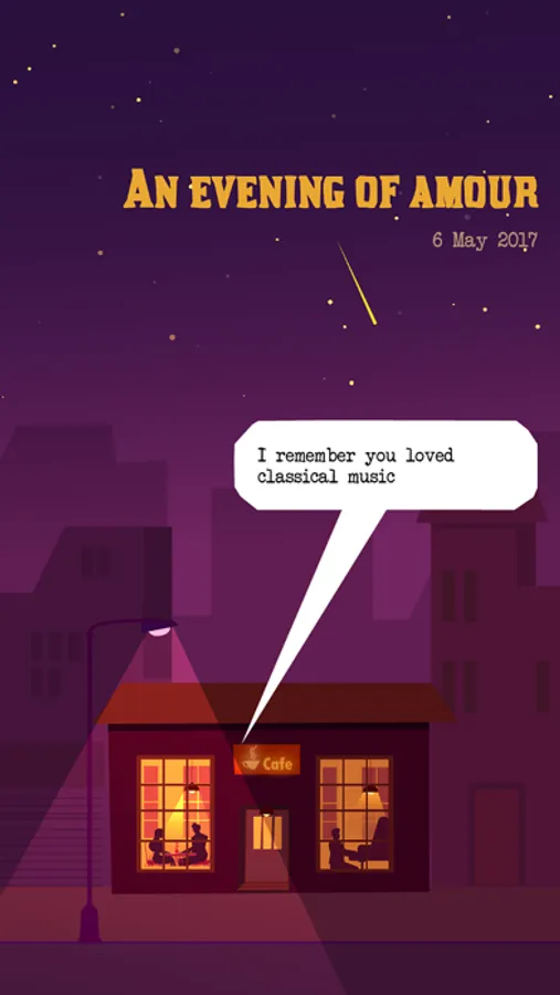 The game gives you a whole new experience of storytelling. Story pieces are presented in stylish interactive posters. You will be able to play the story, find your own path, get involved in the characters' lives, and solve their puzzles. Your choices will let you know more or just reach the end.