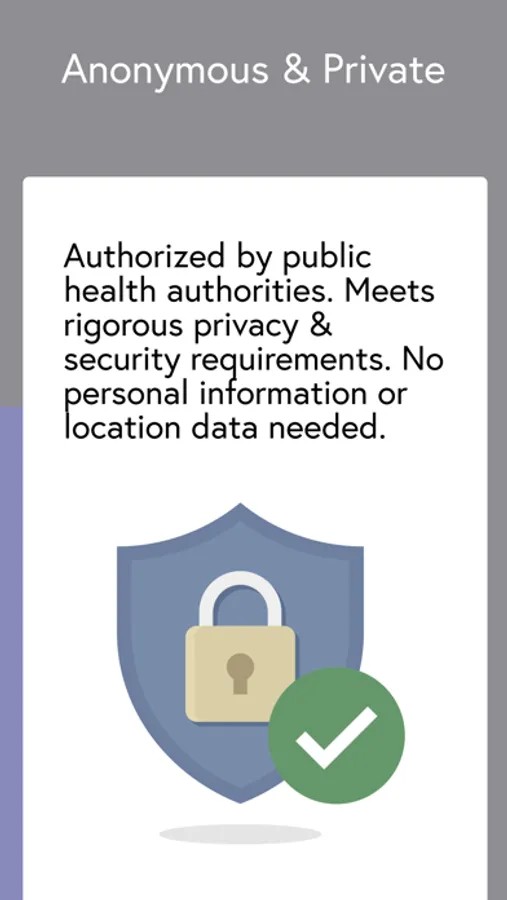 Anonymous and private, the app doesn’t need any personal information or location data. Authorized by public health authorities, it meets rigorous privacy and security requirements.