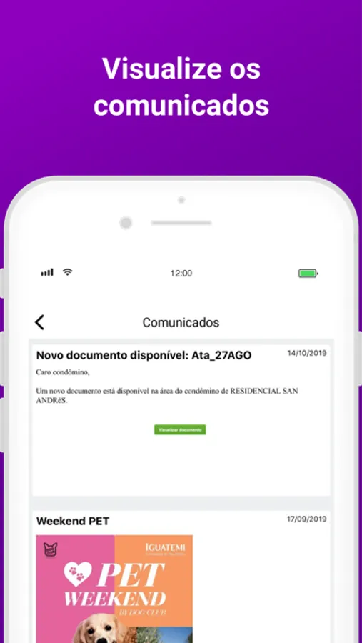 * Visualizar comunicados emitidos pela Condominiar e pelo síndico de seu condomínio;