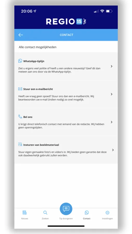Met de app van Regio15 kun je eenvoudig en snel een nieuwstip doorgeven.