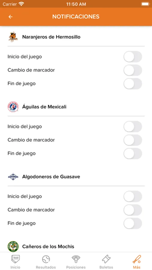 • Recibe avisos sobre todo lo relacionado a Naranjeros de Hermosillo.