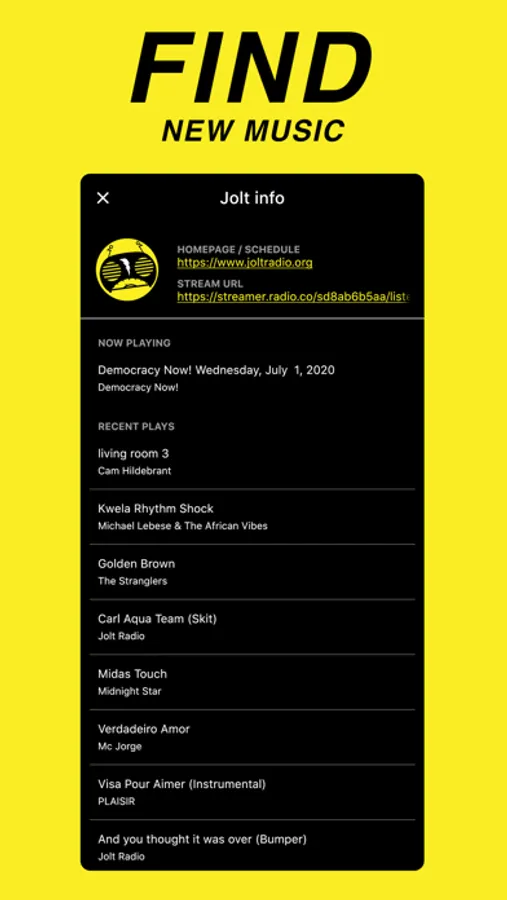 The official Jolt Radio app. Listen to the eclectic mix of music from world class DJs broadcasting from our studios in Miami.