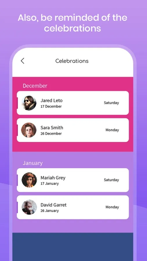 +Celebrations: You only need to add your loved one or contact’s birthday or any other day you celebrate and leave the rest to Little Joys Agenda. This way, you’ll never forget to congratulate them and bring them a happy surprise!
