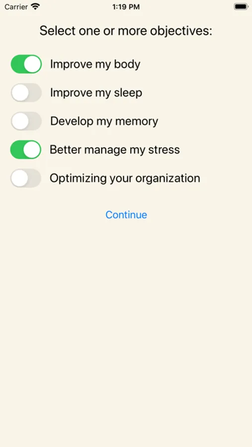 After choosing your goals, you will carry out one or more activities every day allowing you to improve your mental health, or weight loss, improved memory, better sleep ...
