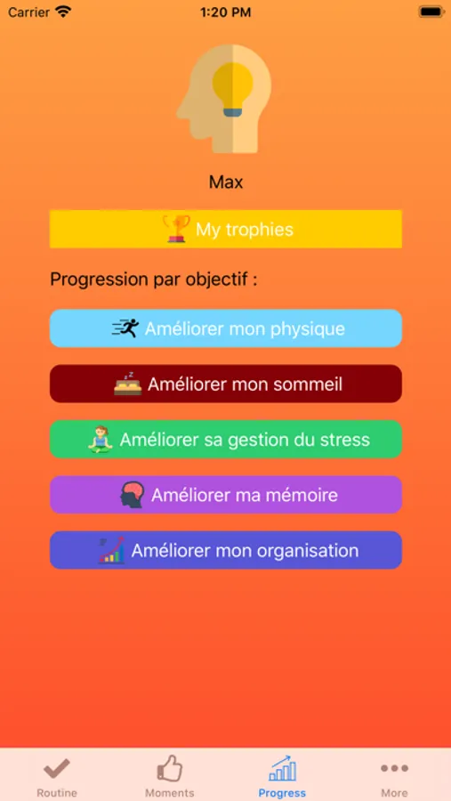 Whether you're looking to lose weight, gain muscle, improve your memory, manage your stress better or improve your sleep, you will find your account. All the improvements are available below, and this is just the beginning. In the future we will add many more improvements. The goal is simple, give us your goal and let yourself go. Each day, one or more activities directly related to your goal will be entrusted to you. An application to bring them all together, that's Custom Life! The only health and fitness coach who brings together so many improvements in one place!