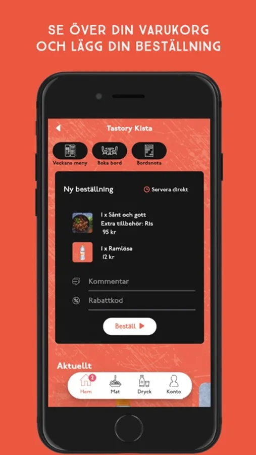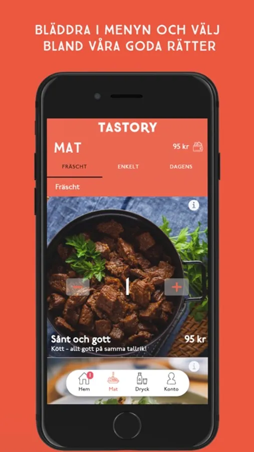 Vi erbjuder våra gäster fräsch mat tillagad från grunden av bra råvaror. I buffén hittar du alltid en variation av spännande gröna rätter och tillbehör – perfekta att kombinera med ditt val av dagens fisk, kött och/eller vegetariskt. I vår matlagning hämtar vi inspiration från världens smaker, och tillagar den på Tastorys vis!