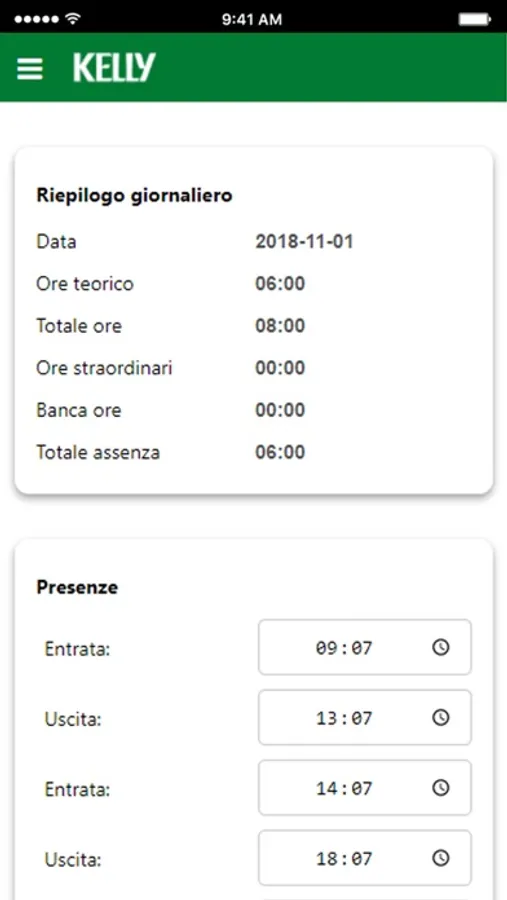 Timesheet Kelly Services ti permette di visualizzare e consuntivare le tue presenze direttamente dall'applicazione, oppure con il servizio web.