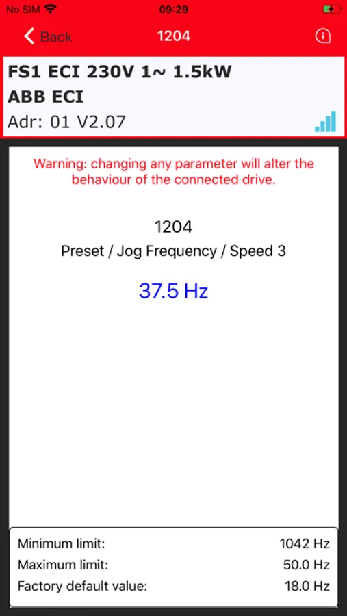 Monitor drive status, motor speed, motor current and motor power in real-time. When unlocked, the user can adjust motor speed, start the drive, stop the drive and reset trips from the Smartphone App.