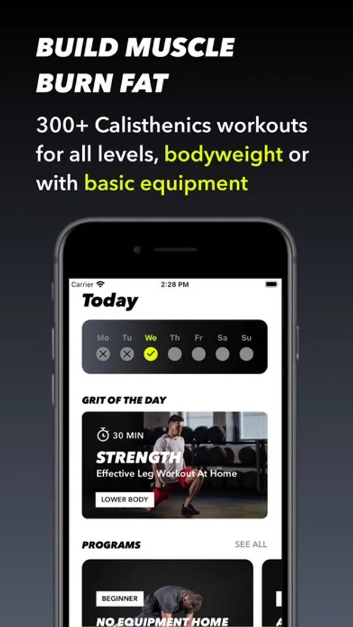 GRIT Calisthenics Training App lets you work out anytime, anywhere. It's a proven, effective way of training and no gym is required. Whatever your fitness level, achieve your goals quickly and build healthy habits with specially designed Calisthenics Strength, Endurance, HIIT, Tabata and Mobility workouts.