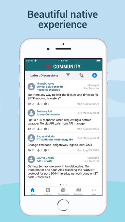 The best way to connect and stay engaged. Fast, simple and convenient. Community lets you collaborate with a global network of Axway tech experts and quickly stay up to date with the latest discussions, articles and blogs.