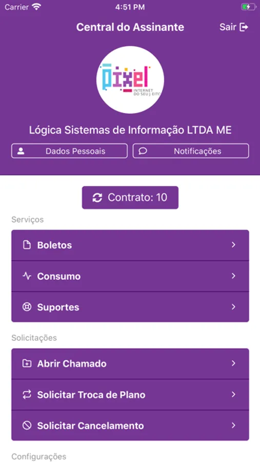 A Pixel Internet Central do Assinante disponibiliza os seguintes recursos: