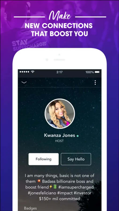 Hey #BoostFriend. Founder and CEO, Kwanza Jones, created the Kwanza Jones Boost Friends™ app because no one succeeds alone... sometimes you need a boost.