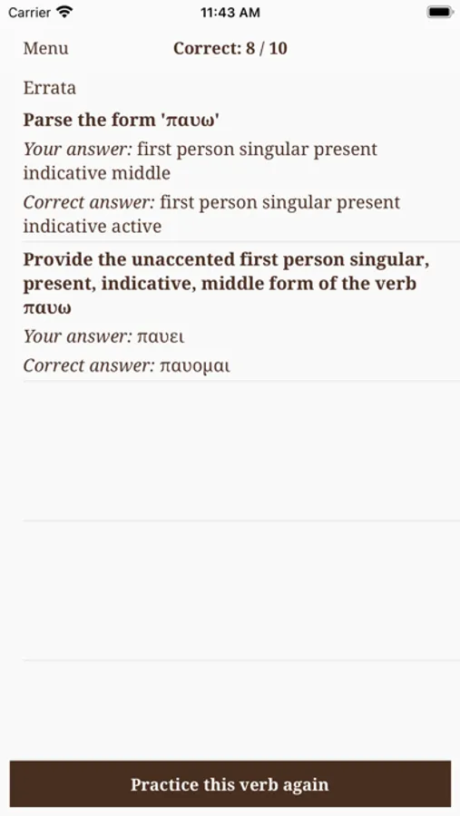 Hoi Polloi Logoi helps students of Ancient Greek master verb forms. Parse verbs and produce forms to earn coins. Collect enough coins to unlock mythical monsters! Customize the game by choosing tenses, voices, and moods, and the presence or absence of accents. The game increases in difficulty as the player’s skills improve.