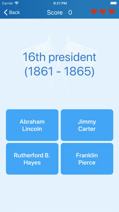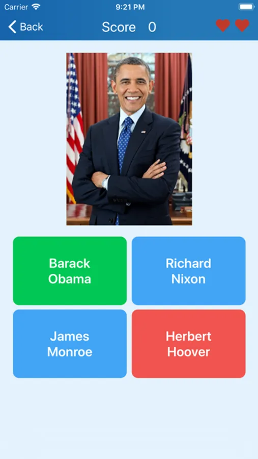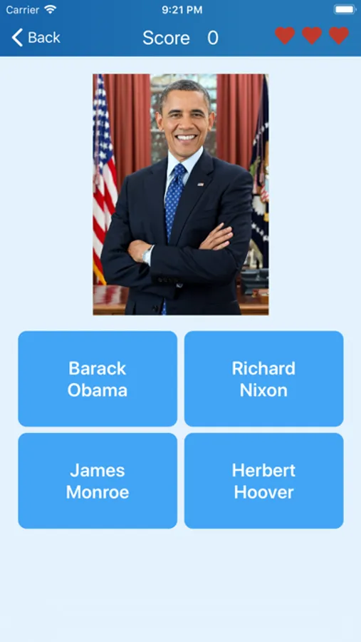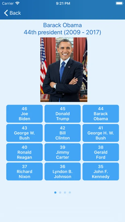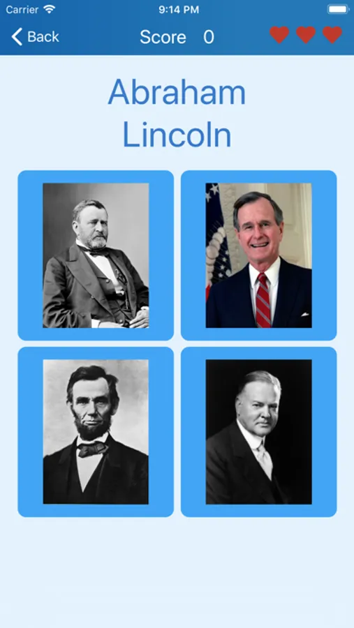 This app is perfect for learning the 46 presidents of the United States of America or for testing your knowledge. Several game modes are available: