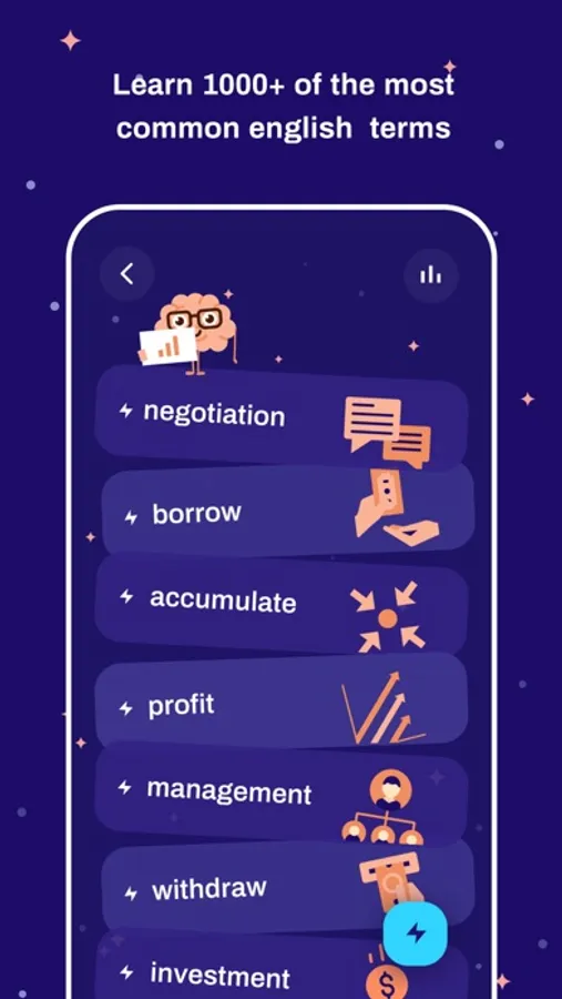 • A really comfy way of learning new words in customized sets so that you can decide what to learn by yourself.