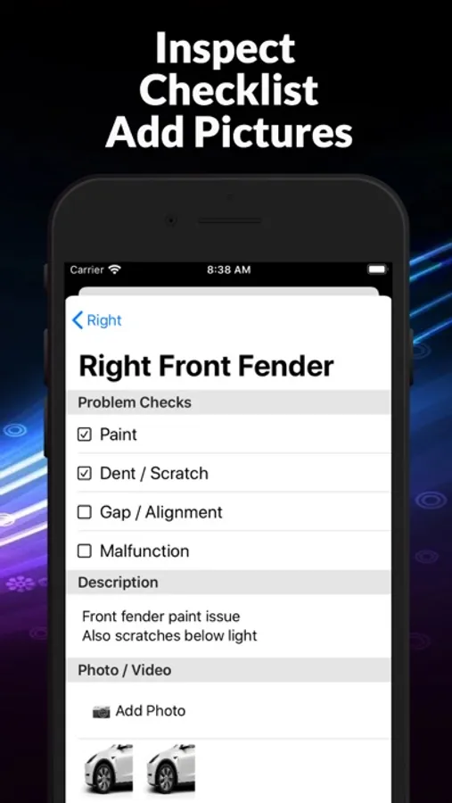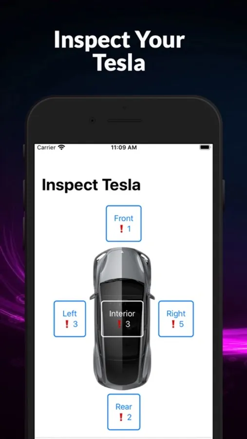 Inspect Tesla with checklist and adding pictures