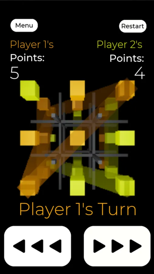 In Tic Tac Toe Cubed, you can play against AI or a friend to compete in a 9x9x9 game of Tic Tac Toe! Across, diagonal, through, there's many ways to score points, and the player with the most points at the end of a round wins!