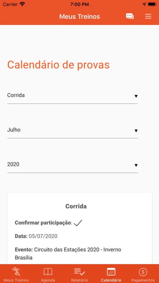 Aplicativo para os atletas da Assessoria Esportiva ... que conta com as seguintes funcionalidades: