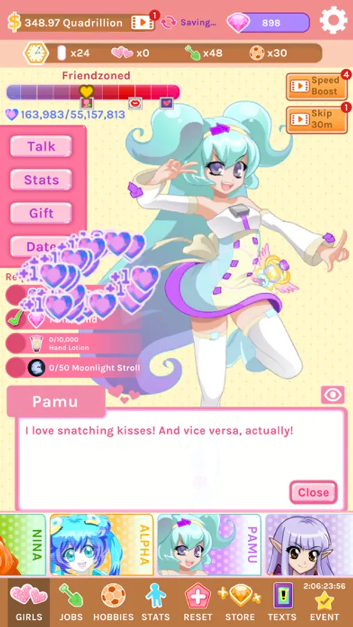 Match with hot anime girls and have fun flirting your way to romance. Chat with your crush and go on dates with fun female friends who are looking for love. Earn cash with idle jobs and hobbies to improve your chances with these lovely ladies. Buy your lover gifts and outfits to boost their affection toward you. Unlock photos and dialogue prompts as your love grows!