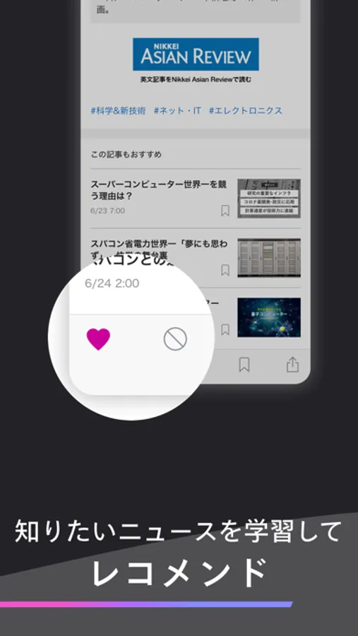 あなたが興味を持ちそうな記事を、AI が日経電子版からピックアップ。アプリを使うたびに AI があなたの興味を学習します。