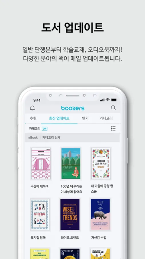 - 문학, 교양, 외국어, 경제 분야 등 다양한 분야의 도서가 매일 매일 신규로 업데이트됩니다