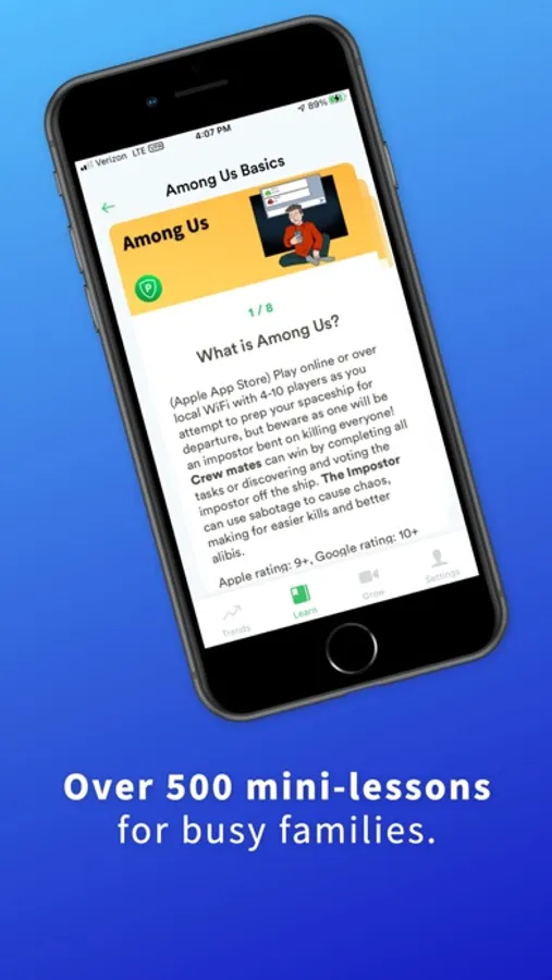 Lessons on: YouTube. Disney+. Snapchat. TikTok. Discord. Digital mental health. Social media tips. Digital rules for co-parents. Router set-up. Instagram. Pornography talks. Tricky people. Screen time. Gaming. iPhone set-up. Chromebook basics. Creating Digital Trust. Popular games like Among Us, Minecraft. Emergency steps for digital crises. And more!