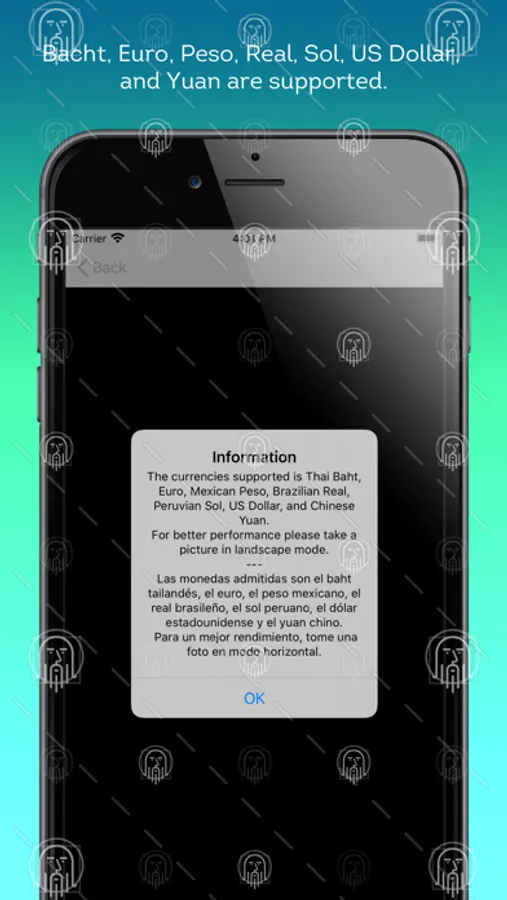 Currency Converter app uses Artificial Intelligence to detect bills with just taking a picture. At the moment the application only accepts individual bills. For better performance please take a picture vertically.