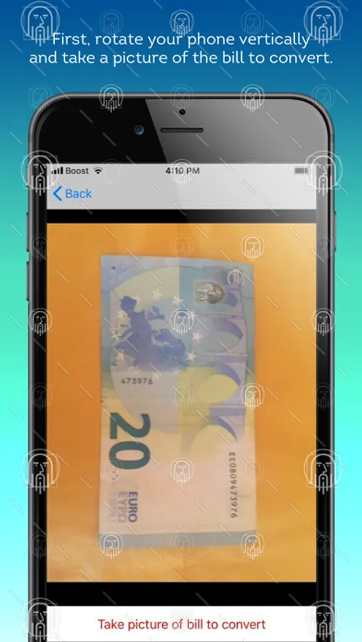Step 2. Take a picture vertically of the bill you will like to convert.