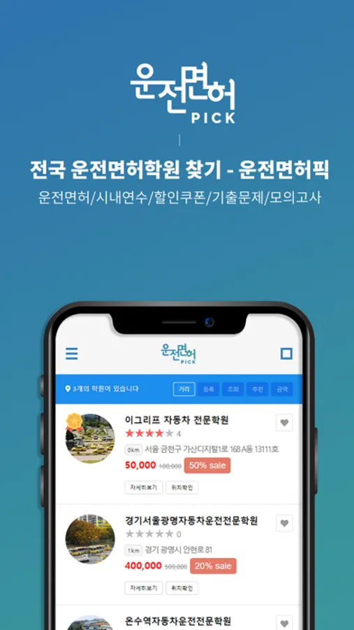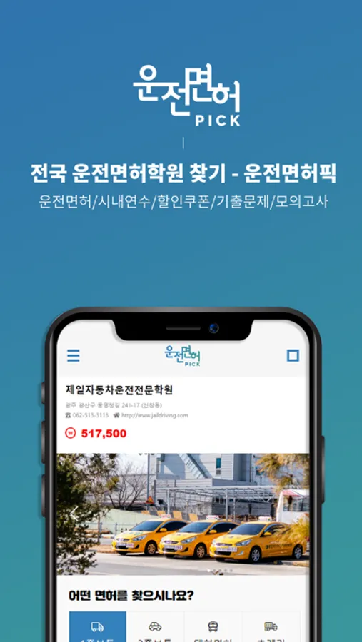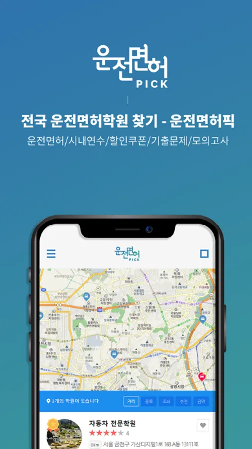 대한민국 모든 면허학원 정보를 손쉽게 알 수 있는 학원찾기 서비스! 운전면허픽!