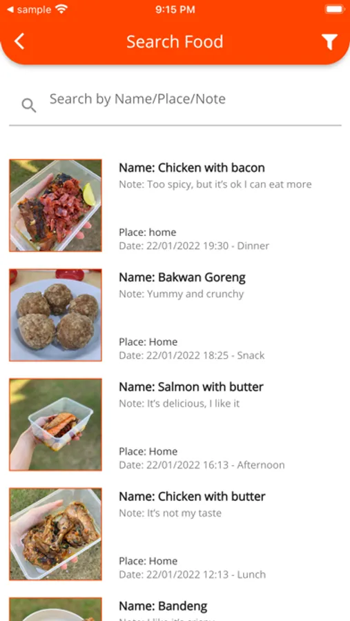 13. New feature to search your food by name/place/note and filter menu time.