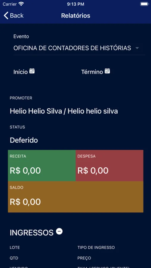 App para promoters que trabalham com o Eventonet para verificarem relatórios e realizarem vendas diretas através do aplicativo.