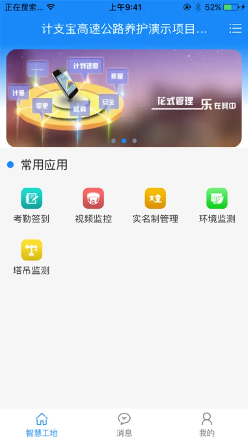 “岳阳智慧工地”项目管理系统,适应于各类工程建设项目,主要功能有:考勤签到、签视频监控、实名制管理、环境监测、塔吊监测等工程项目管理功能,为项目建设提供移动管理平台。