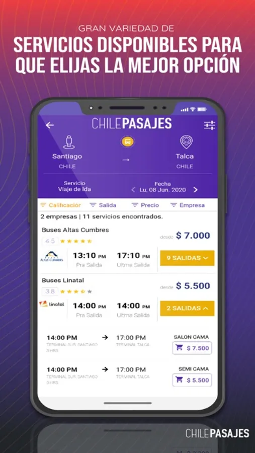 ¿Quieres o necesitas viajar? No te compliques, cuídate y ahorra tiempo y dinero con nuestra app ChilePasajes. Descárgala y listo, podrás comprar tus pasajes donde sea que estés usando tu smartphone.