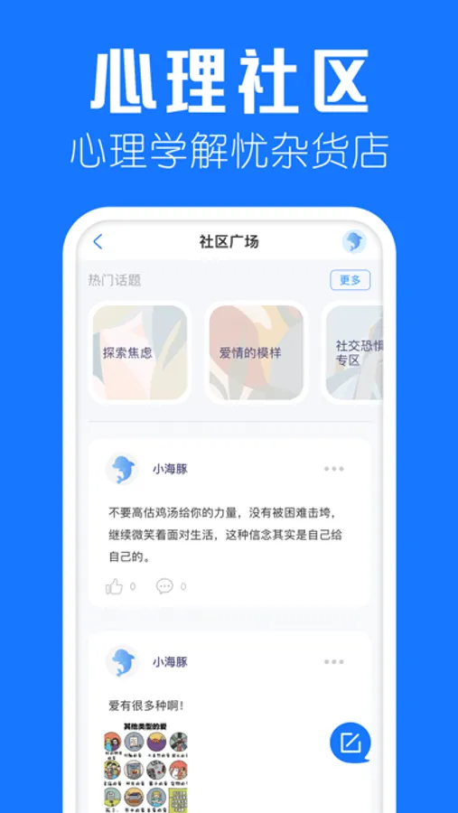 【心理社区】与关注自我的心理学爱好者分享自己的情绪和内心体验,遇到更懂你的人。