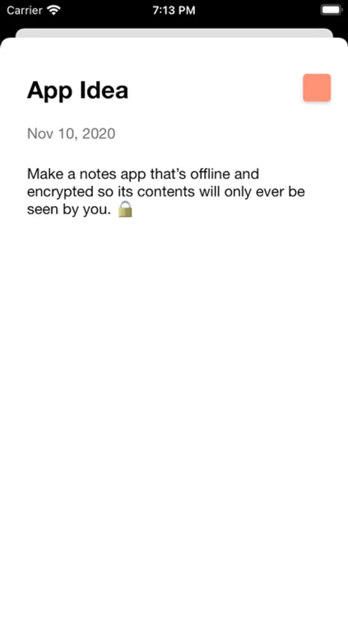It is open source, offline, and uses no third party dependencies. The note content is AES 256-bit encrypted, and it utilizes the Secure Enclave hardware component in supported devices to store the corresponding decryption key. That key is stored on-device only, and thanks to the Secure Enclave cannot be transported off-device. Access is protected by FaceID.