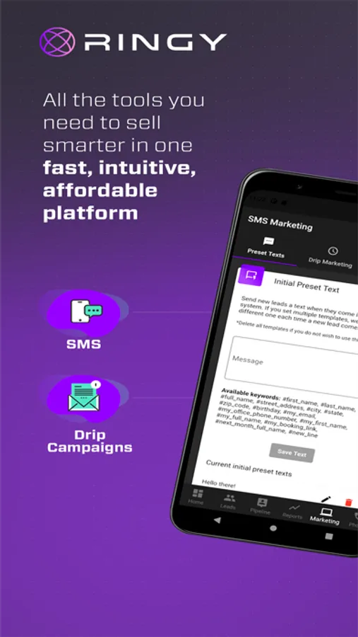 Got leads? Close more deals with an automated sales team in your back pocket. Set up your sales pipeline, sync your Google calendar, generate reports, send and receive calls / text messages and more. Ringy offers world-class automation to help clients do more with less.