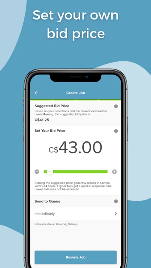MowSnowPros allows you to order on-demand, no-contract lawn mowing and snow shovelling. Enter your property address, service attributes, and personal preferences. Instantly see recommended bid pricing in your area based on current conditions. Pick your price and submit the job to our network of MowSnowPro independent contractors. A valid credit card is required to order service.