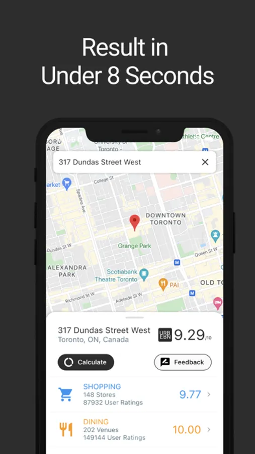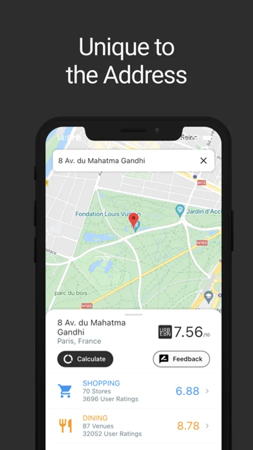 We search for amenities within a 1km radius of the address, analyse user ratings & reviews and provide you with an unbiased rating for the location.