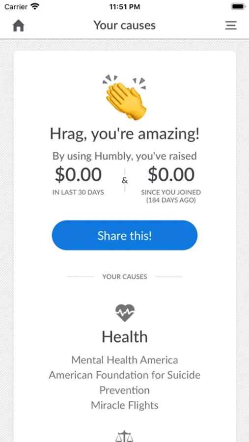 We'll start by asking you to select some causes you'd like to guide money towards. Later, you'll hear a short ad or two when you tap play on an episode. One of Humbly's advertising partners paid for you to hear and experience that ad, so that money goes to the causes you've selected, without costing you a dime.