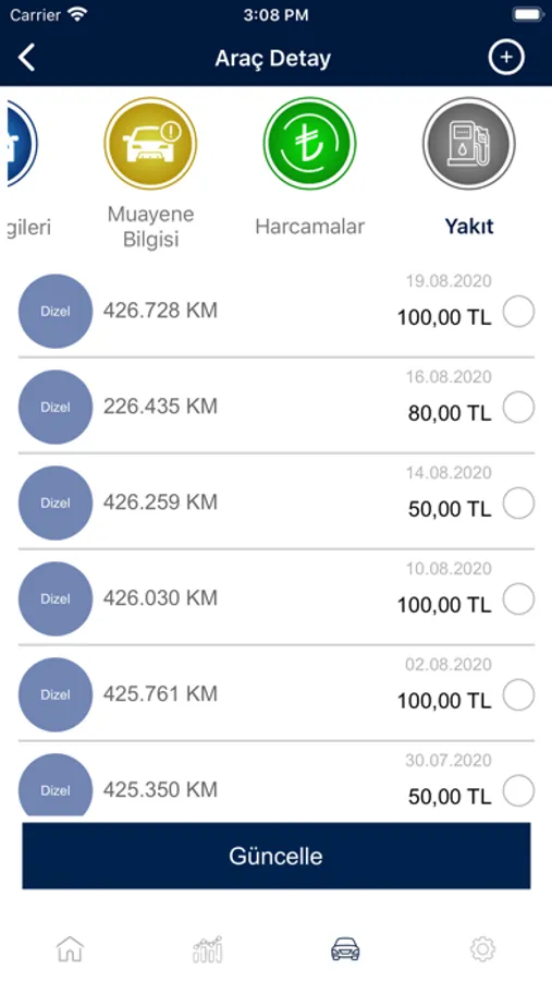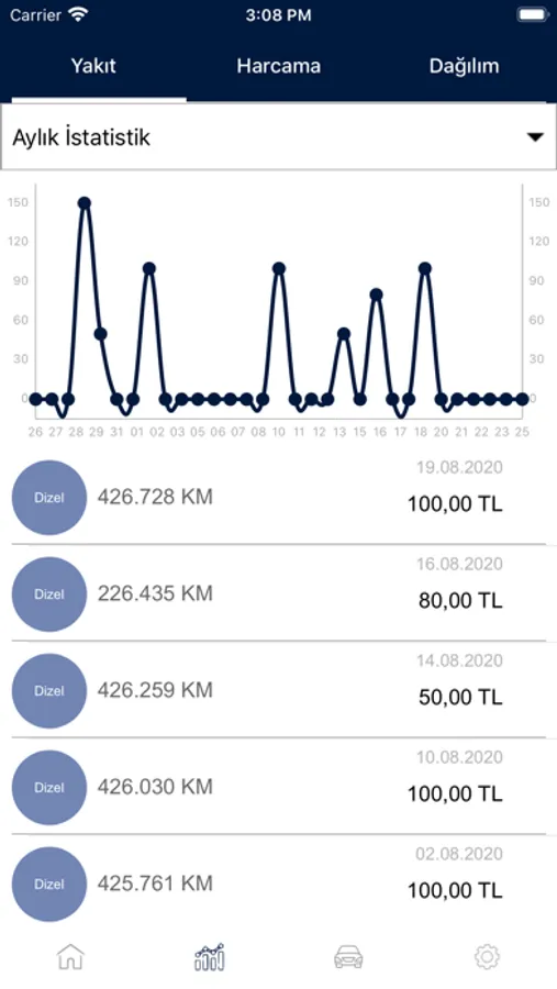-You can view the statistics of daily, weekly, monthly fuel and expenditure information.