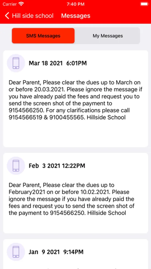 Hillside School Provides communication app for parents using which they can download school announcements, class assignments, can see attendance and activity.