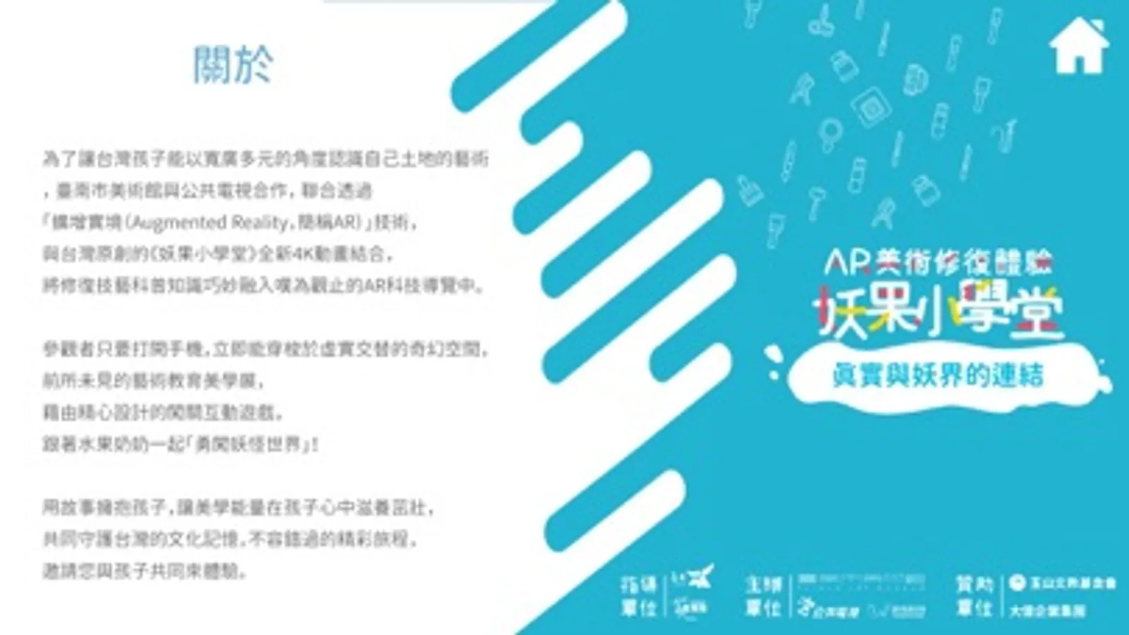 為了讓台灣孩子能以寬廣多元的角度認識自己土地的藝術,臺南市美術館與公共電視合作,聯合透過「擴增實境(Augmented Reality,簡稱AR)」技術,與台灣原創的《妖果小學堂》全新4K動畫結合,將修護技藝科普知識巧妙融入嘆為觀止的AR科技導覽中。
