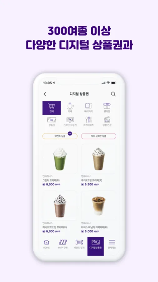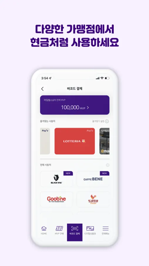 - 편의점, 커피전문점 등에서 직접 상품을 선택 후 전액 결제에 사용 할 수 있습니다.